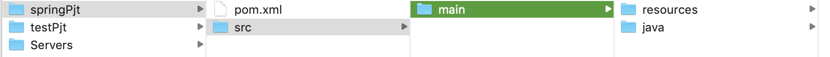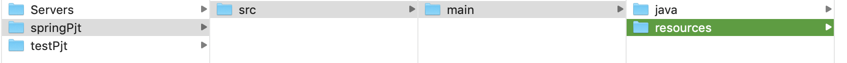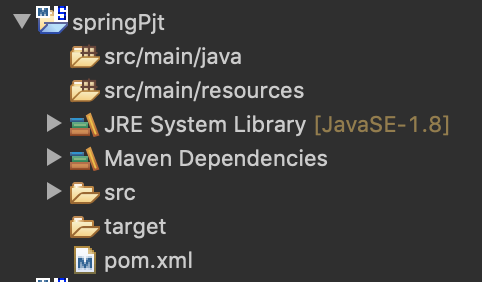 - src 폴더생성 -> main 폴더생성 -> java(자바코드가 들어갈 폴더) ,resources ( 컨테이너 : applicationContext.xml 들어갈 폴더 )