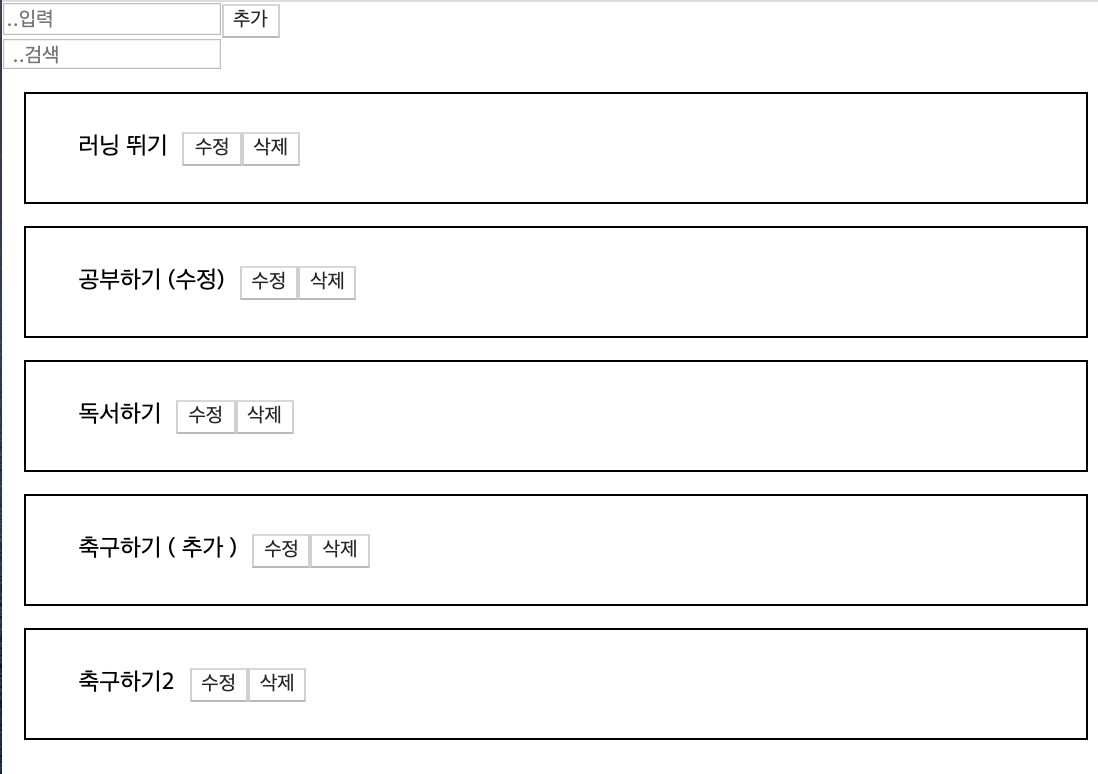 handleUpdate = (id, data) => { const { toDoList } = this.state; this.setState({ toDoList: toDoList.map((toDoList) => { console.log(toDoList); if (toDoList.id === id) { console.log(toDoList.id + ' / ' + id); return { id, ...data, }; } return toDoList; }), }); };map 메소드를 사용하여 id값이 서로 같은 경우 수정하려는 배열이 맞으므로 거기만 새로 받아온 data 를 반환해준다.